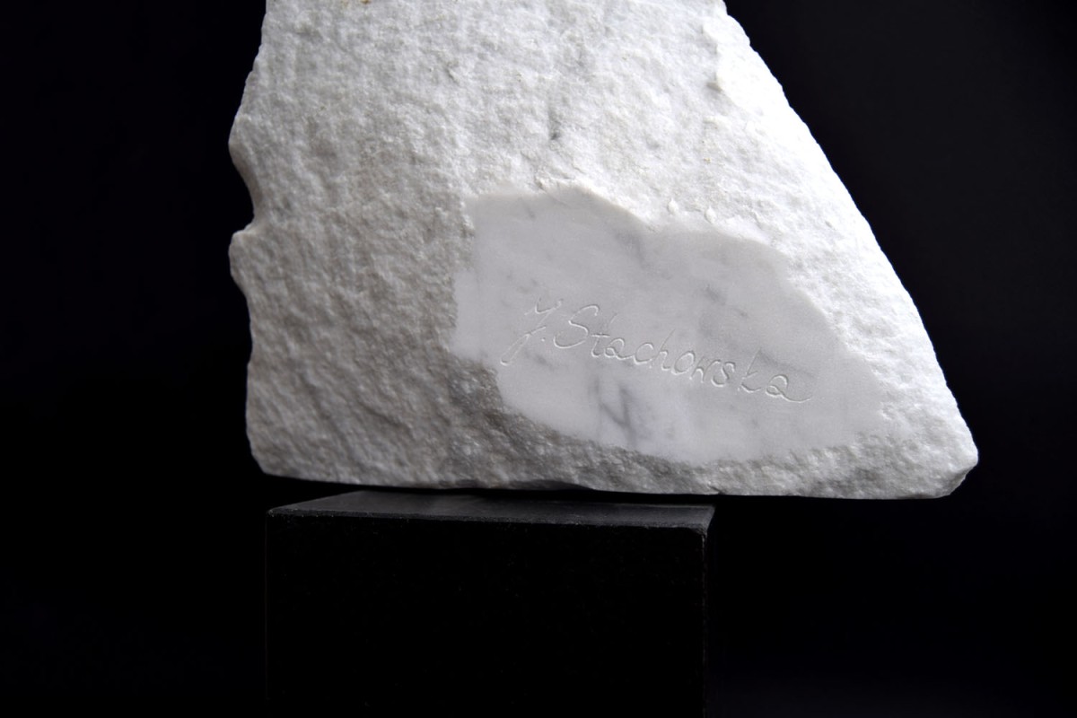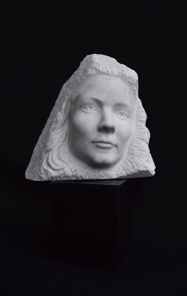 Autoportret, marmur Carrara, granit, 2023, 45x30x15 cm