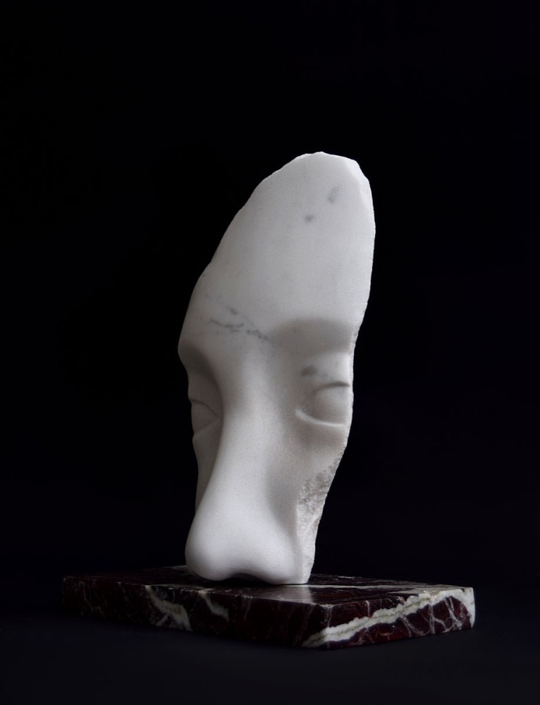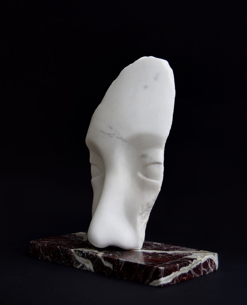 Apollo, marmur Carrara; marmur Rosso Levanto 2023, 24 x 12,5 x 10 cm
